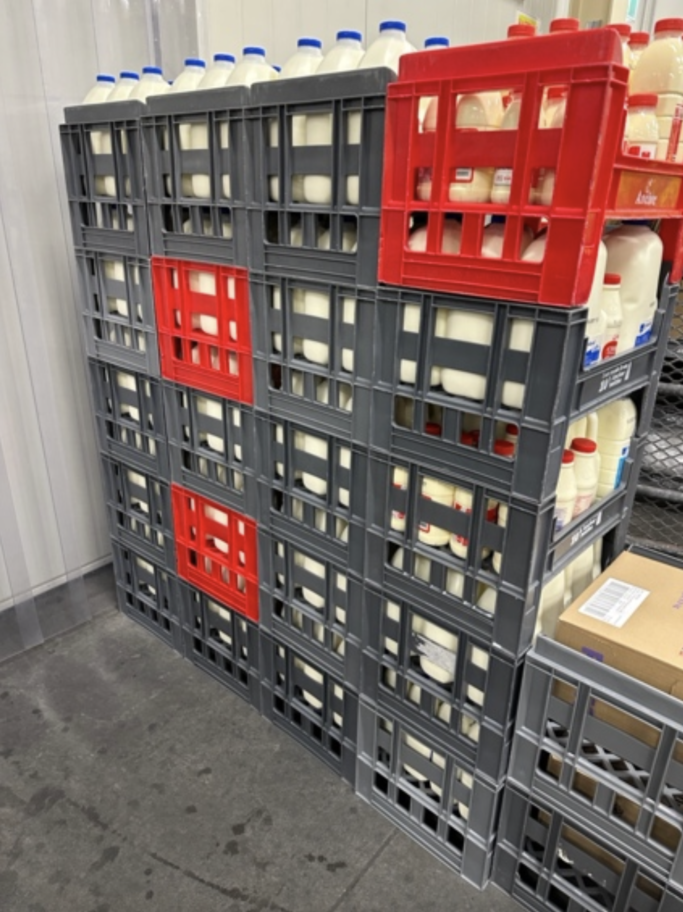 Everything we deliver is in a reusable plastic milk crates which work like stackable shelves. Crates are used to deliver milk and other chilled food products, then collected from our customers to be reused over and over. Anchor milk crates are made from 10% recycled content.